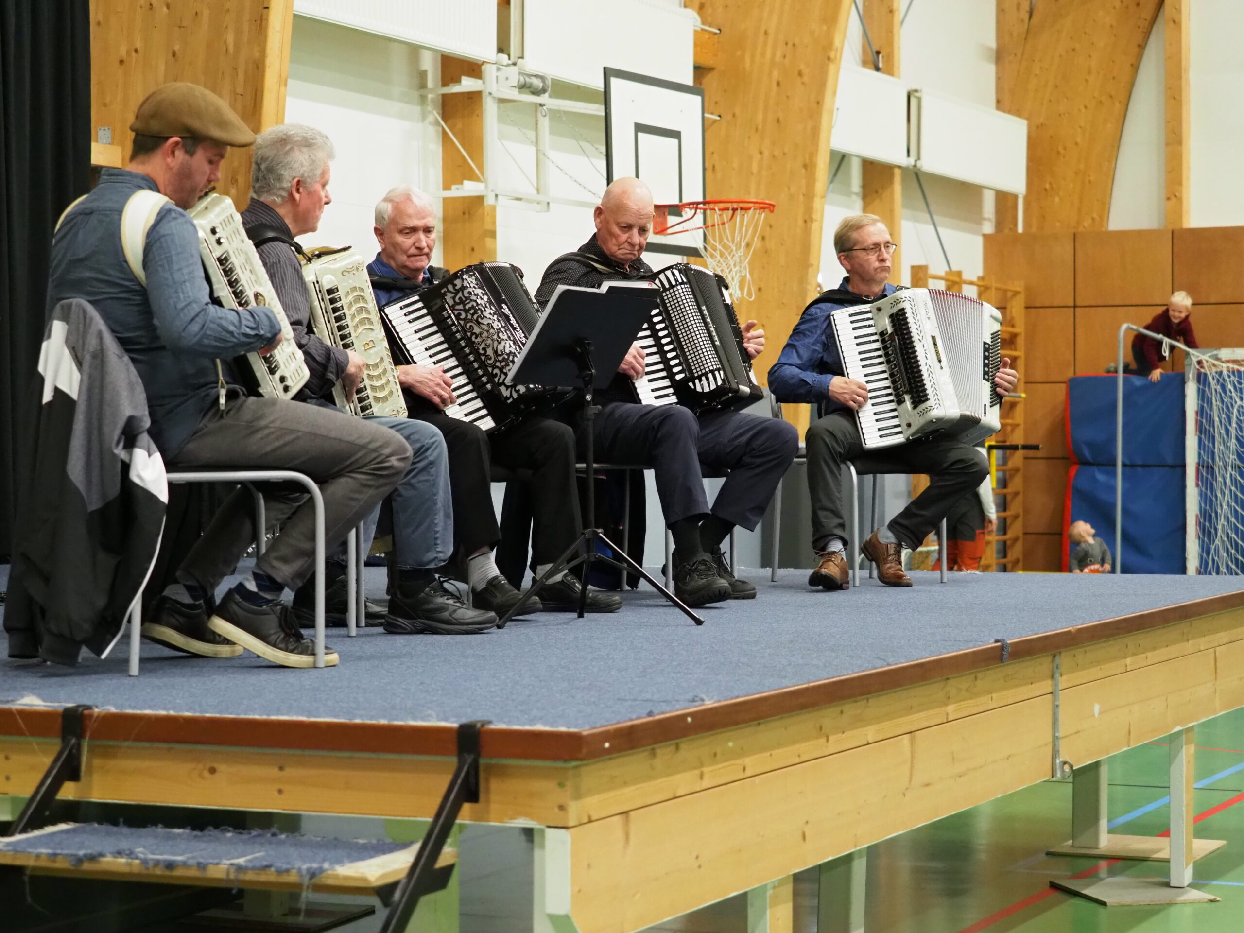 Harmonikkusveit Suðurlands spilaði í íþróttahúsinu um leið og öllum íbúum var boðið til morgunverðar af fyrirtækjum á svæðinu. Mynd: Ólafur Ingi Ólafsson, Óla Mynd.