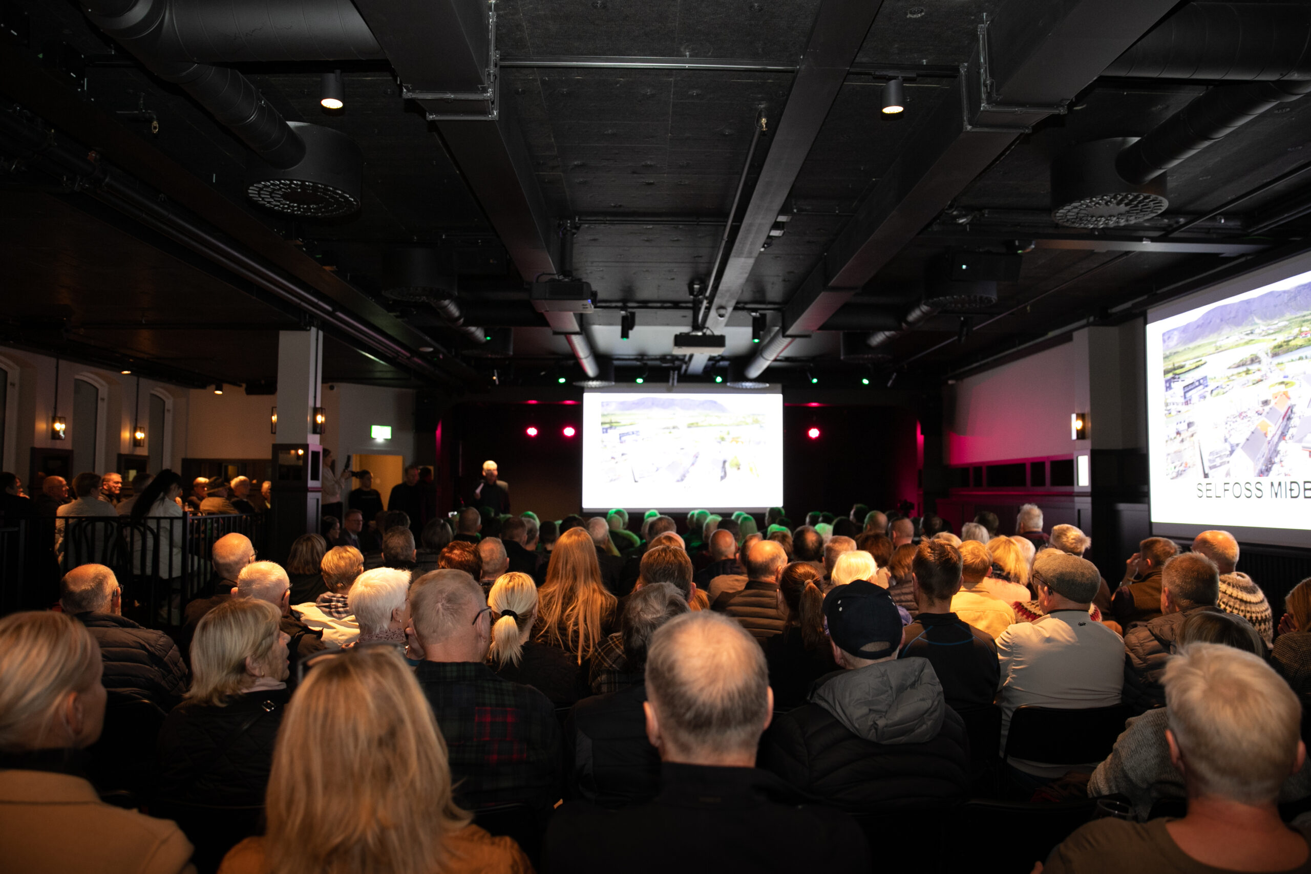 Í kvöld var boðað til íbúafundar á Sviðinu, glæsilegum nýjum tónleikastað við Brúartorg á Selfossi. Yfir 300 manns mættu á fundinn og fylltu ekki bara allt Sviðið heldur báðar hæðir Miðbars að auki. Þarna var næsti áfangi í byggingu miðbæjar Selfoss kynntur af Sigurði Einarssyni arkitekt og Leó Árnasyni, stjórnarformanni Sigtún Þróunarfélags. Valdimar Bragason stýrði fundinum þar sem íbúum gafst færi á að sjá þrívíddarteiknaðar myndir af þeim 40 húsum sem koma til með að fylla annan áfanga miðbæjarins, verði tillagan samþykkt. Mögulega gæti komið til íbúakosningar um þessi áform og yrði það þá líklega eftir næstu áramót.