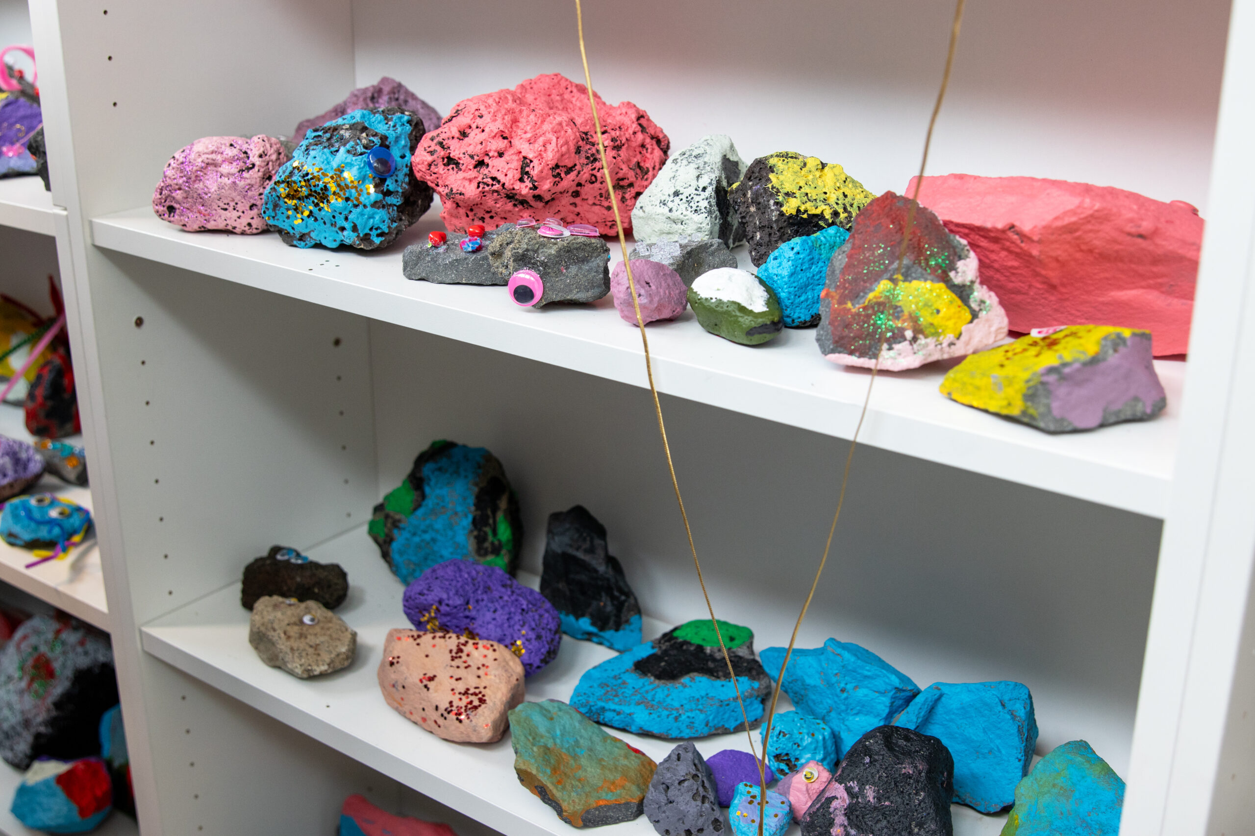 Hægt var að kaupa steina í öllum regnbogans litum. Ljósmynd: Dfs.is/EHJ.