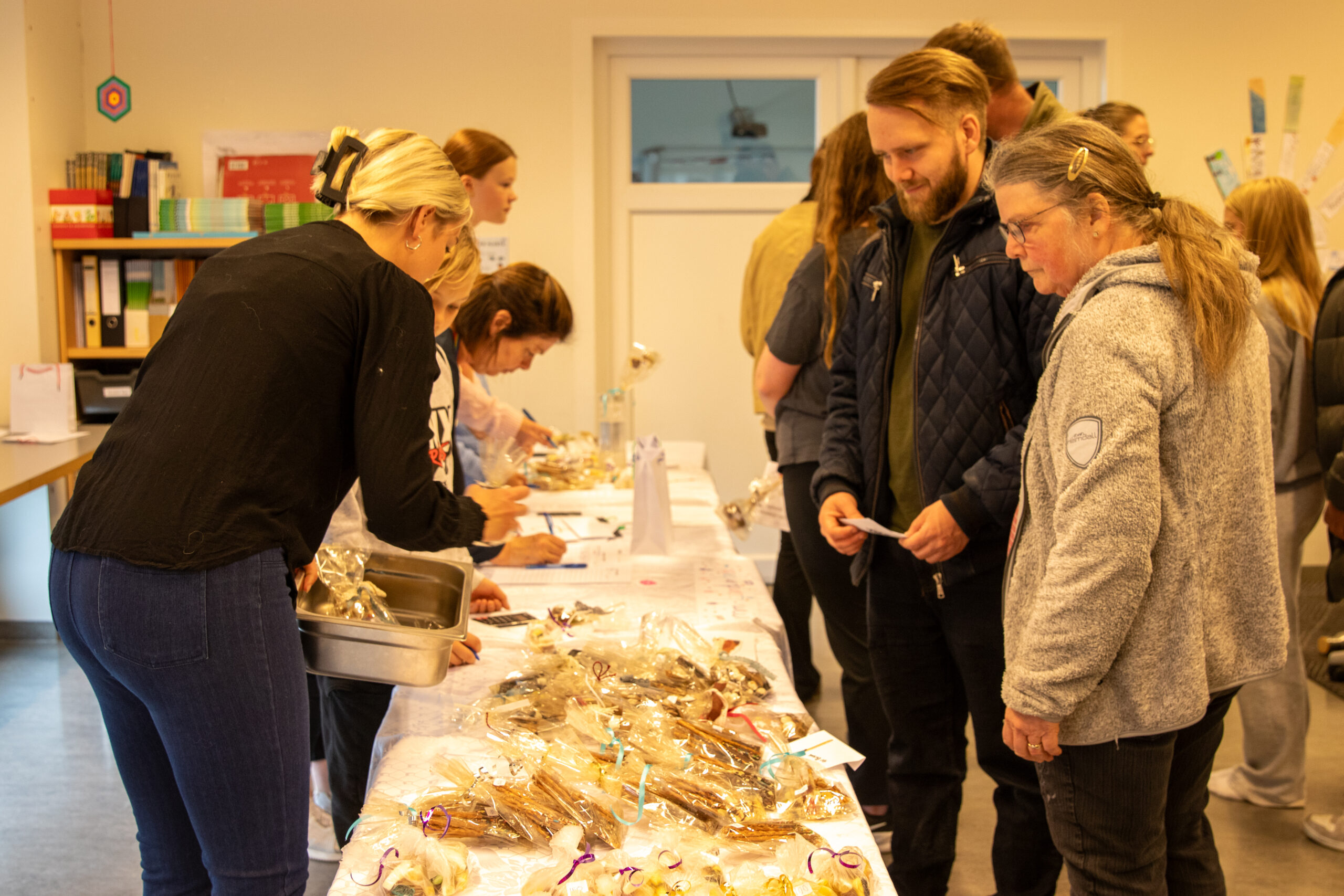 Nemendur voru á fullu að útbúa vörur eftir pöntunum. Ljósmynd: Dfs.is/EHJ.