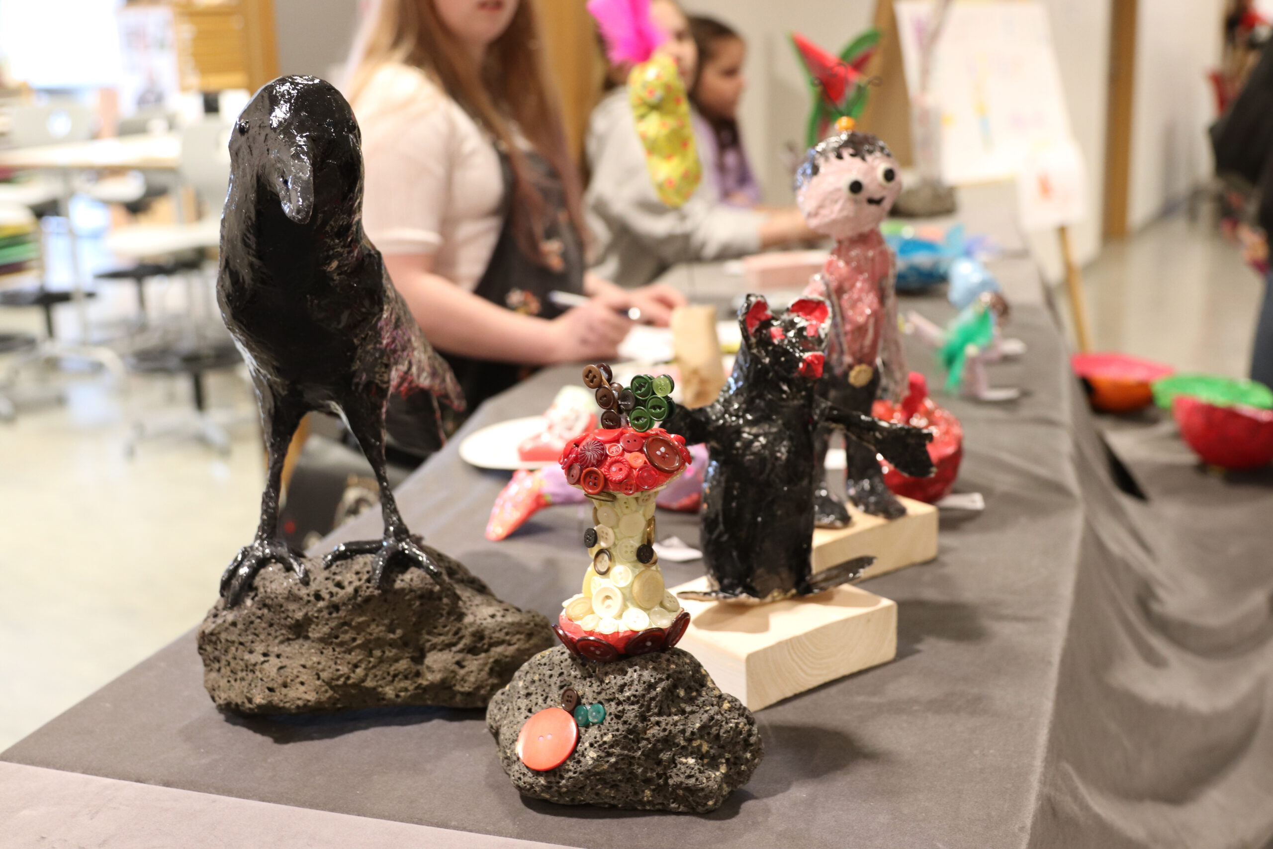 Glæsilegar styttur úr pappamassa ruku út. Ljósmynd: Dfs.is/EHJ.