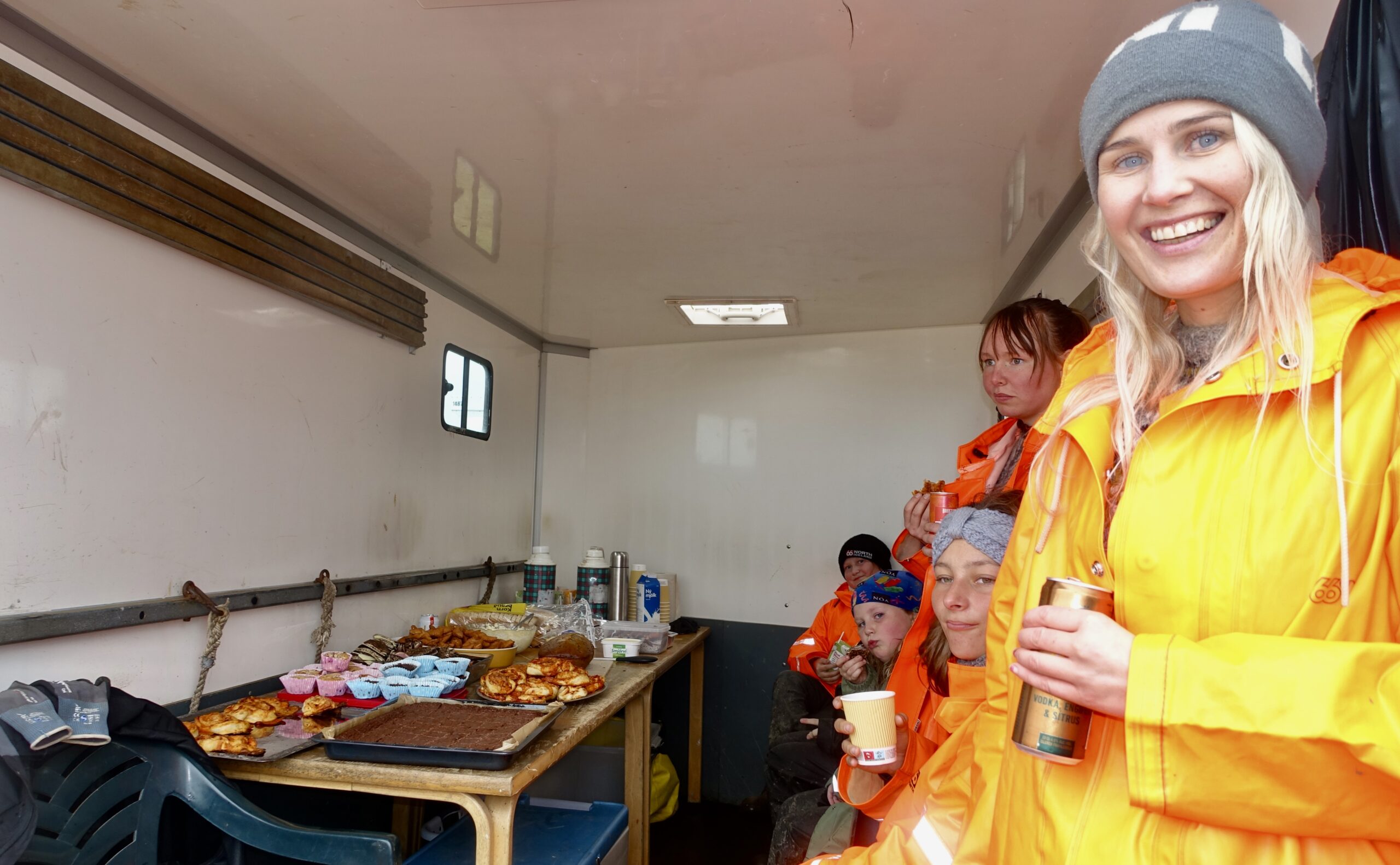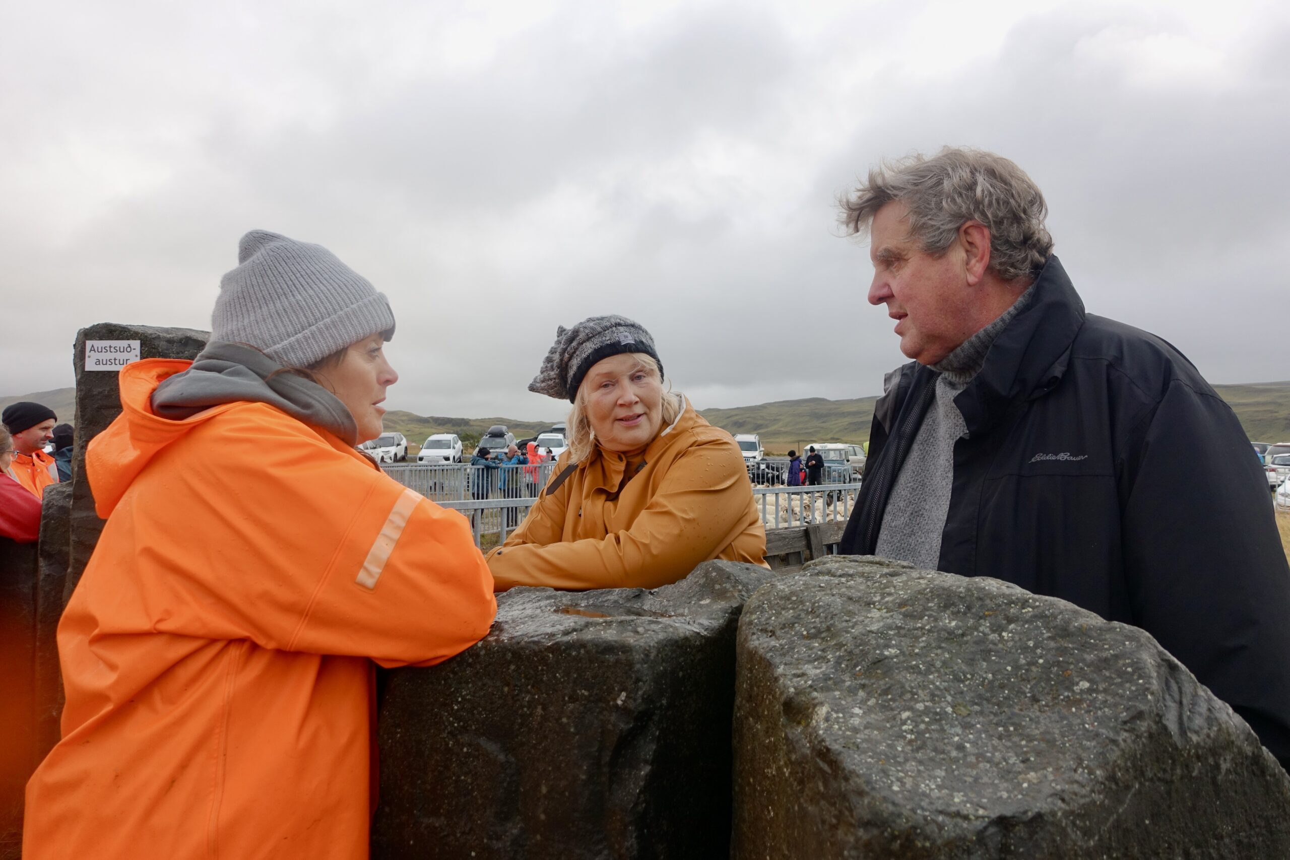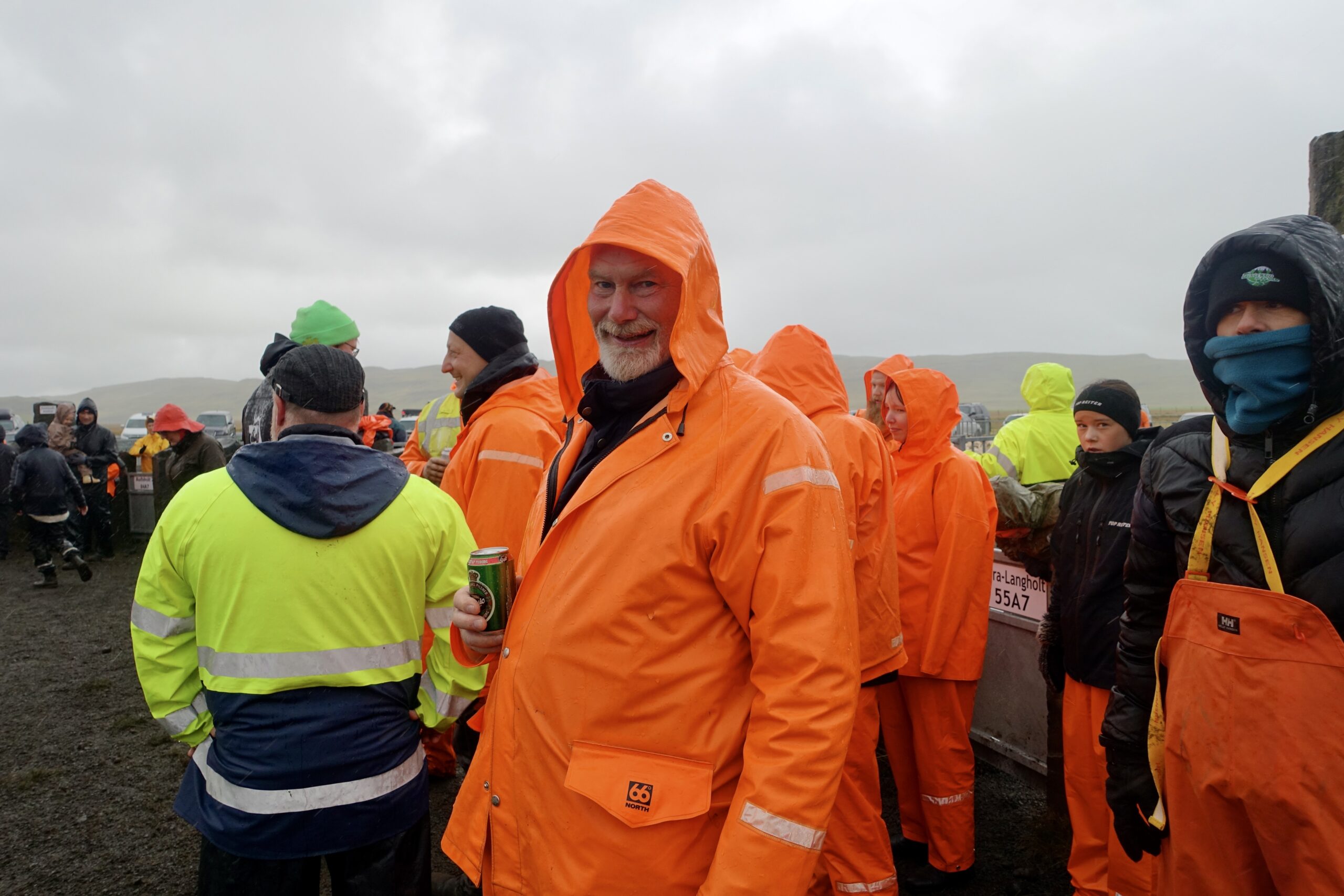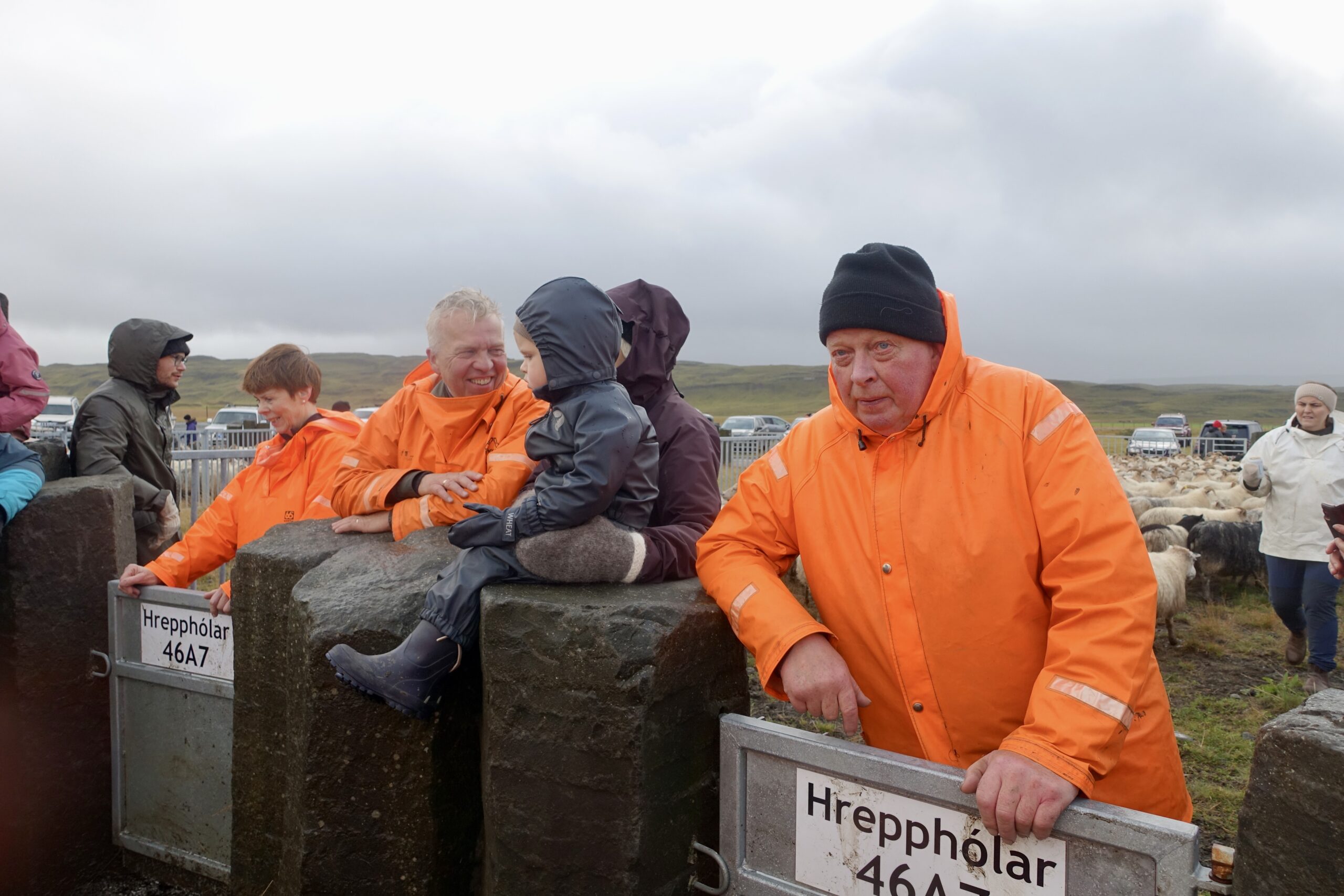 „Skin og skúrir í Hrunaréttum og óvenju glaðlegir litir á klæðnaði réttagesta. Sama hvernig viðrar er alltaf gaman í réttum. Það er gert hlé á réttastörfum til að borða nestið, sem víða var vel í lagt og kunningjar eiga saman spjall,kannski bara einu sinni á ári… í réttunum,“ sagði Helga Ragnheiður Einarsdóttir, sem mætt hefur í réttir áratugum saman, í samtali við Dagskrána. Helga sendi okkur meðfylgjandi myndir sem sýna ánægða og litskrúðuga réttagesti, þrátt fyrir augljósa úrkomu.