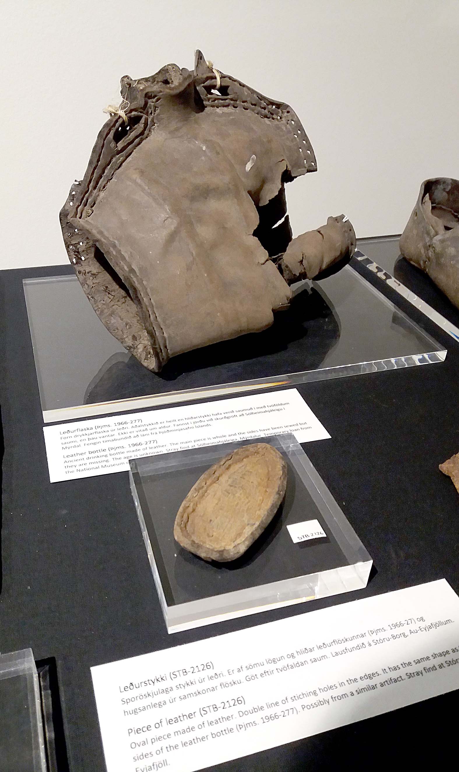 Á árinu var fengið millisafnalán frá Þjóðminjasafni Íslands að frumkvæði Þórðar Tómassonar, fyrrum safnstjóra Skógasafns. Munurinn er jarðfundin leðurflaska sem fannst við skurðgröft við Sólheimahjáleigu í Mýrdal og var komið til Skógasafns af ábúendum en Þórður Tómasson afhendir Þjóðminjasafninu gripinn í kjölfarið. Flaskan hefur verið saumuð saman og á jöðrunum eru göt með tvöföldum saum en bútarnir sem lokað hafa flöskunni hafa ekki varðveist. Í safnkosti Skógasafns er leðurbútur sem mögulega hefur verið notaður til að loka fyrir slíkt gat og hefur flöskunni og leðurbútnum verið stillt upp saman á sýningu. Um slíkar leðurflöskur er getið um í Íslendingasögum og ljóst er að gripurinn er ævaforn.