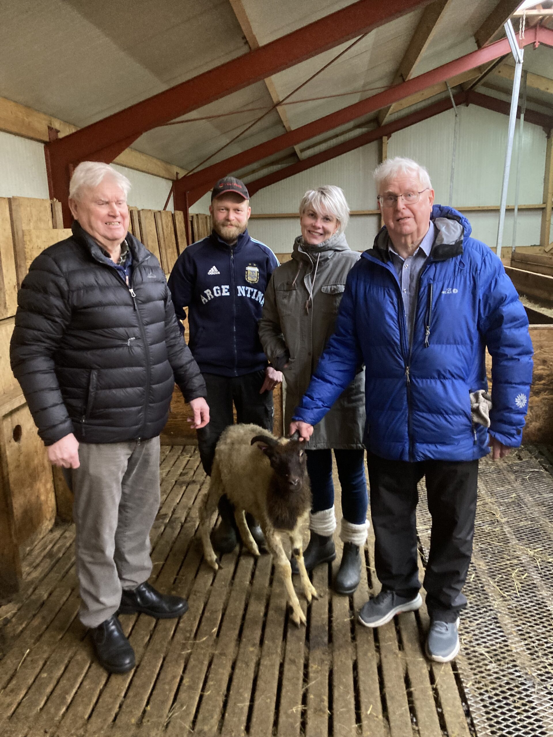 Að lokinni fjósskoðun var gengið til vélageymslunnar og fjárhúsanna. Strax vakti móhölsóttur gemsi athygli, hnarreist með mikla athyglisgáfu. Hún var þá forystukind frá Skúla á Ytra-Álandi í Þistilfirði í eigu Gunnars Einarssonar en fóstruð þeim Magneu og Ingvari. Ingvar fer jafnan fremstur fjallmanna með fjallsafni Gnúpverja úr af-réttinum og hlakkar hann til að sjá hversu vitsmundir gimbrarinnar verða en hún ber nafnið Djörfung. Það er greinilegt að sauðkindin er ekki bara til ánægju í Þrándarholti á svona blönduðu búi heldur gefur hún bæði arð og er hið félagslega afl sveitarinnar ekki síður en kvenfélagið, þetta var niðurstaða morgunsins. Jóhannes Sigfússon bóndi og hagyrðingur á Gunnarsstöðum sá gimbrina hjá Skúla vini sínum og orti vísu sem hann lét fylgja sem heimanmund að norðan: