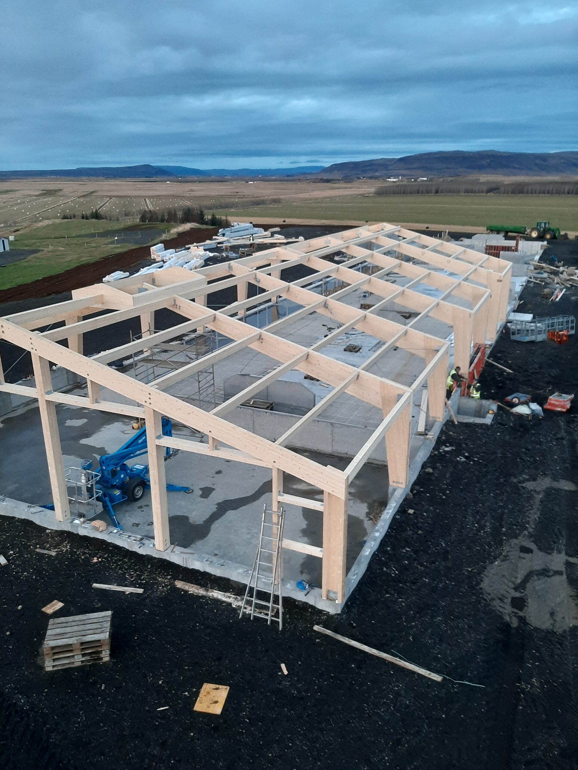 Tíðindamaður Dagskrárinnar var á ferð í uppsveitum Árnessýslu á dögunum, og stóðst ekki þá freistingu að aka í hlaðið á bænum Þrándarholti. Þar er staðarlegt heim að líta þegar ekið er upp í Gnúpverjahreppinn gamla, mikið fjós í byggingu og greinilega kraftur í búskapnum. Í Þrándarholti búa bræðurnir Ingvar og Arnór Hans Þrándarsynir ásamt konum sínum Magneu og Sigríði Björk en Þrándur og Guðrún njóta þess að sjá afrakstur ævistarfsins komið í hendurnar á þriðju kynslóðinni sem setið hefur jörðina. Hús var tekið hjá þeim Ingvari og Magneu og drukkið morgunkaffi en þar voru þeir bræður faðir húsfreyju Gunnar og Garðar Einarssynir tvíburabróðir hans. Búskapurinn var ræddur yfir kaffinu en mörg járn eru í eldinum hjá Þrándarholtsbændum. En í byggingu er 120 kúa fjós af fullkomnustu gerð sem verður tekið í notkun með vorinu. Legubásafjós með tveimur mjaltaþjónum, burðarstíu og uppeldisaðstöðu. Vekur athygli tíðindamanns turn utan fjósveggjanna, það er þá tólf þúsund lítra mjólkurtankur. Þessi fjósbygging mun vera fjórða fjósið sem byggt er í Þrándarholti í tíð fjölskyldunnar á hundrað árum. Öll umgengni og frágangur kringum bygginguna er til fyrirmyndar, enda segir Magnea að þau hafi fundið gullnámu í hlaðinu, malargryfju.