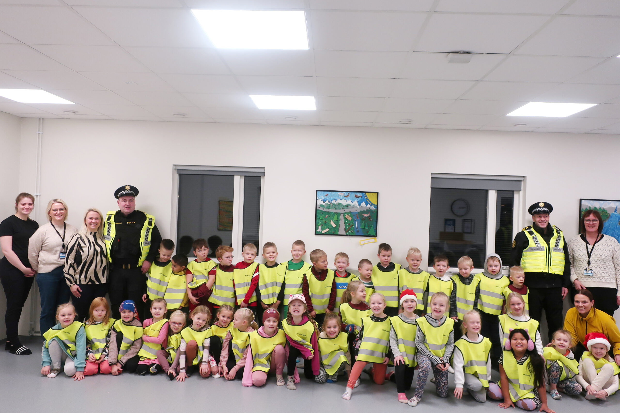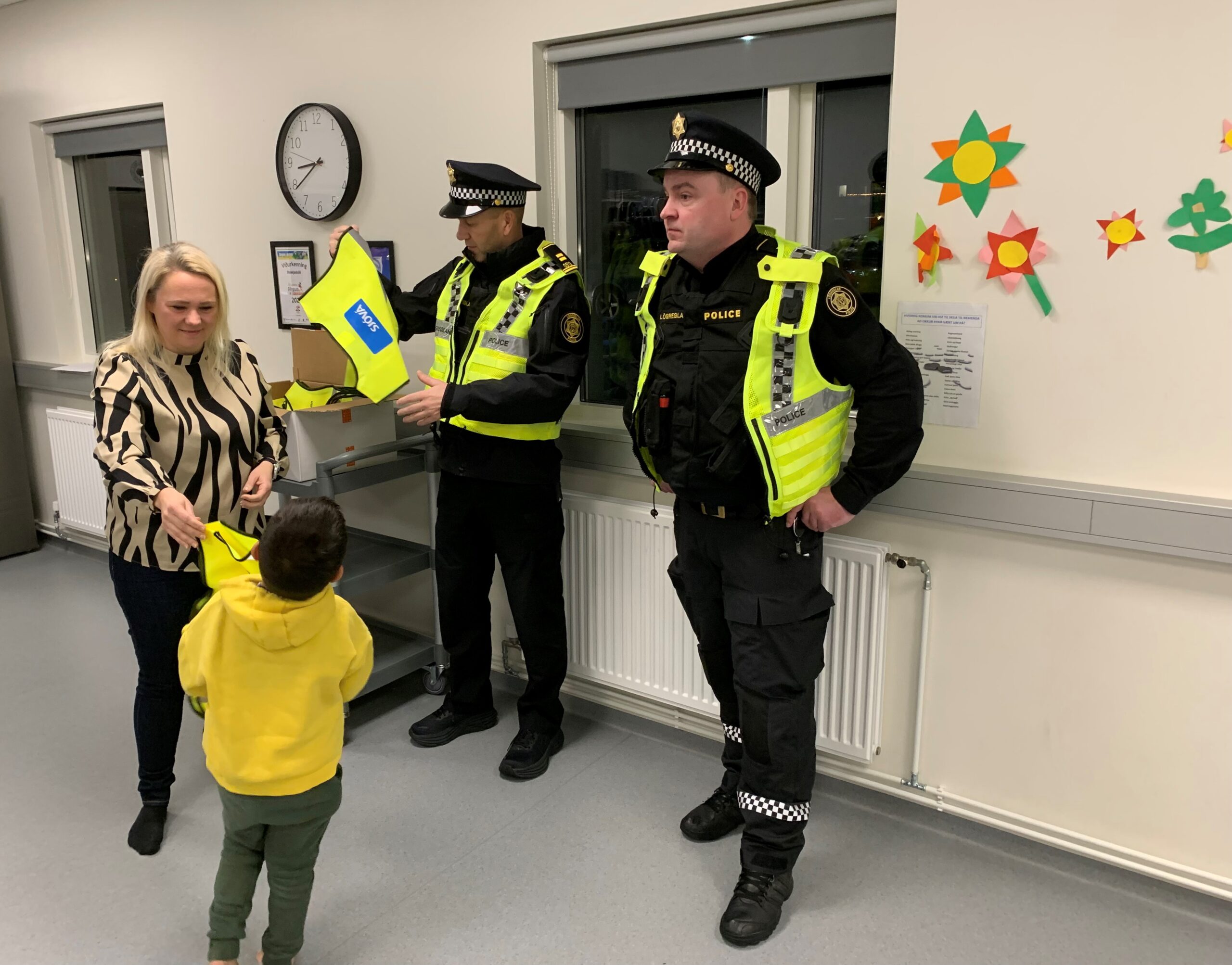 Ívar Bjarki og Magnús frá lögreglunni á Suðurlandi komu til okkar, ræddu við börnin um umferðaröryggi og mikilvægi þess að nota endurskinsvesti og endurskinsmerki í skammdeginu. Börnin voru virkilega áhugasöm og þökkuðu vel fyrir sig.