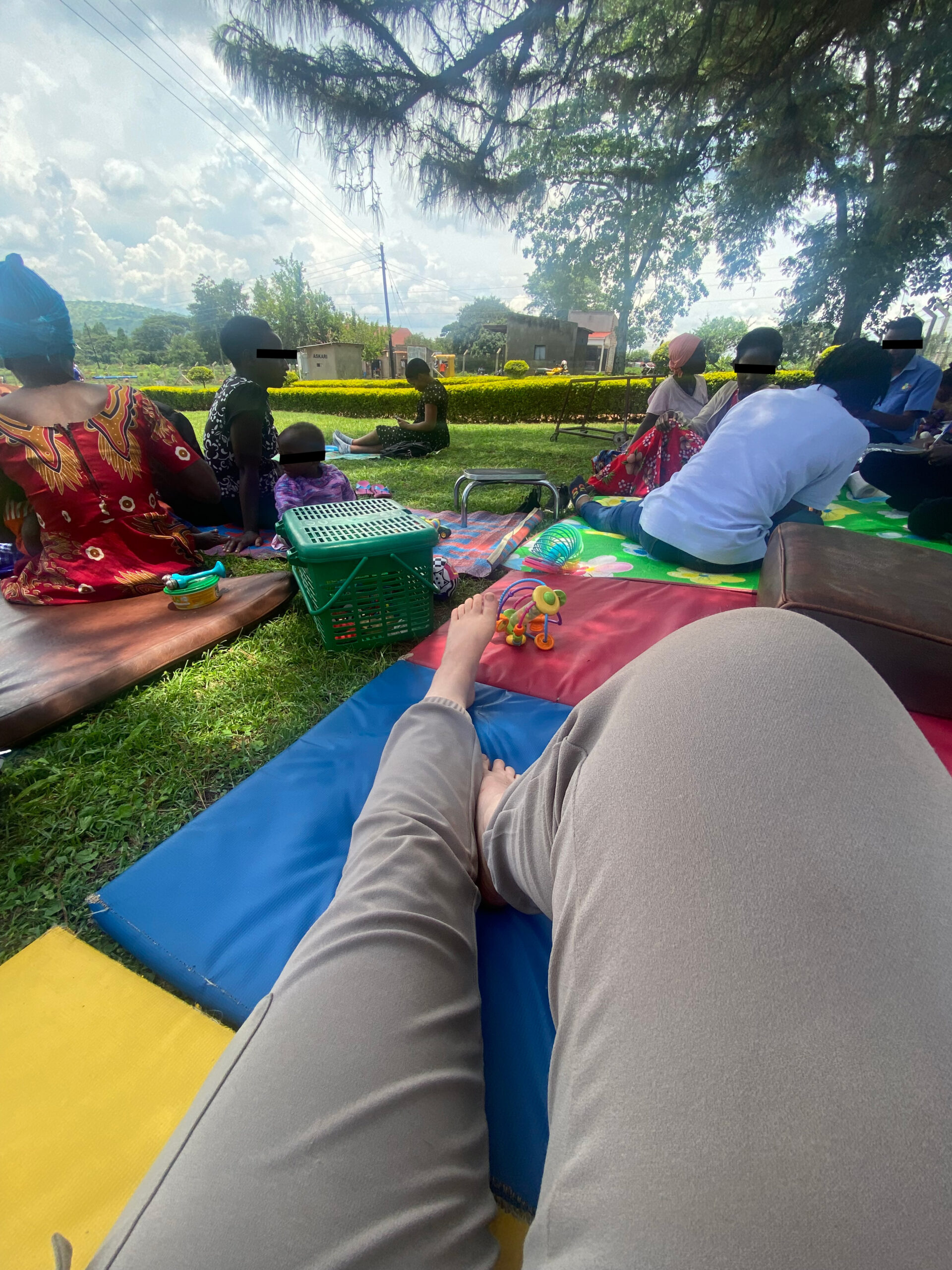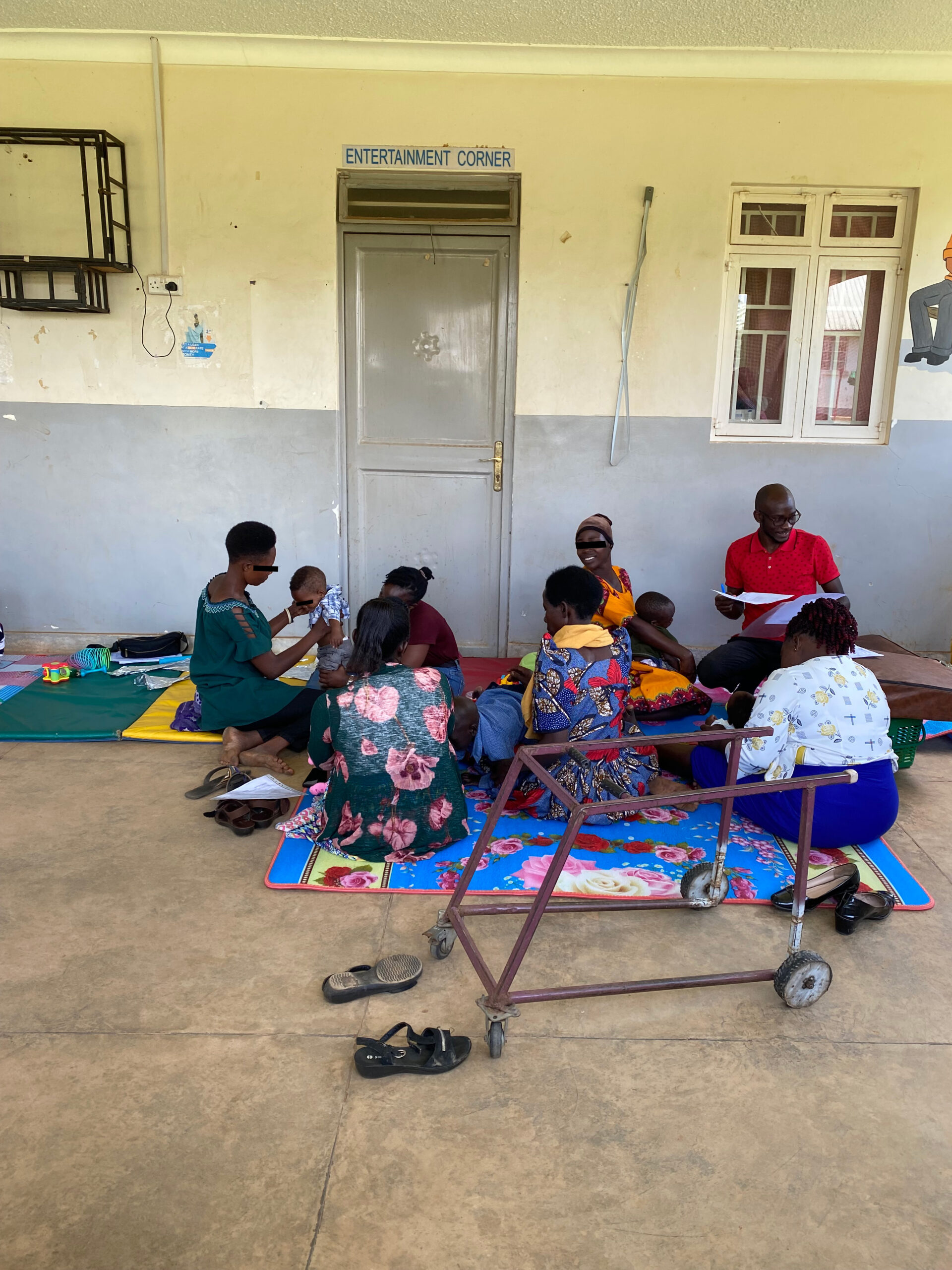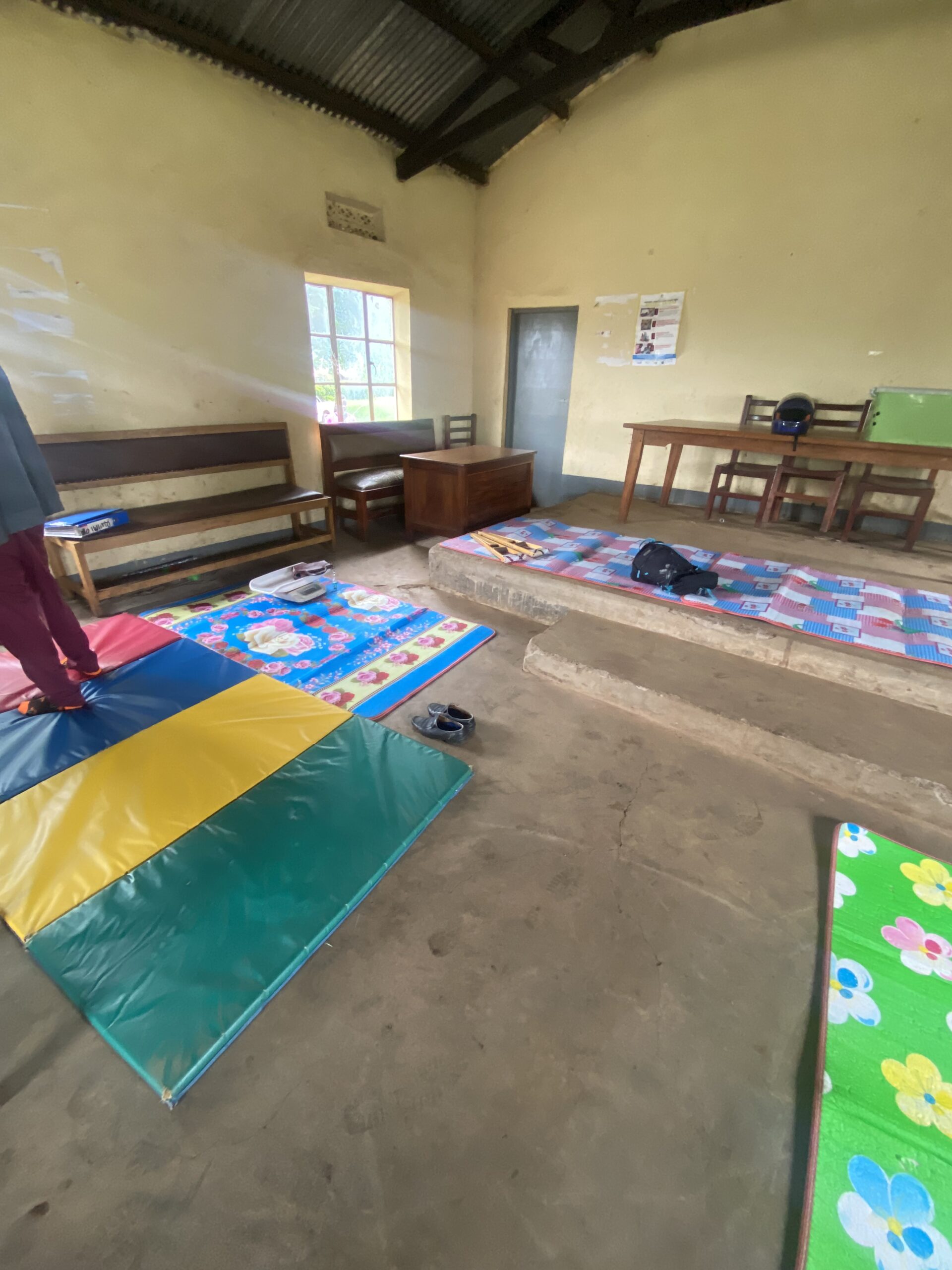 Aðspurð um fyrsta vinnudaginn segist Ástrós hafa mætt til Fort Portal á fimmtudegi eftir tæplega eins og hálfs sólarhrings ferðalag. „Sem betur fer átti ég ekki að byrja að vinna fyrr en á mánudeginum og gat því jafnað mig eftir ferðalagið og áttað mig aðeins á lífinu hérna í Fort Portal. Strax á fyrsta vinnudegi fór ég, ásamt tveimur öðrum sjúkraþjálfurum, iðjuþjálfa, talmeinafræðing, næringafræðing og flogaveikisteymi í svokallað „outreach“um klukkustund fyrir utan Fort Portal en þá förum við út í samfélagið og veitum þjónustuna okkar í bæjum og smáþorpum hérna í vestur Úganda. Fæstar fjölskyldur hafa tök á að sækja þjónustuna til okkar í Fort Portal og því eru þessi „outreach“ ótrúlega stór og mikilvægur hluti af vinnunni. Ég man að þennan fyrsta vinnudag kom það mér á óvart hversu mikill fjöldi fólks beið eftir okkur á heilsugæslunni í þessum smábæ. Við breiddum út dýnur og teppi þar sem við fundum skugga á lóðinni og fjölskyldurnar settust niður hjá okkur, ýmist til að hitta sjúkraþjálfara/iðjuþjálfa, fá úthlutuð flogaveikislyf, næringarstykki við vannæringu o.fl. Þarna eyddum við svo rúmlega 3 klukkustundum að veita þjónustuna okkar áður en öllu var pakkað aftur saman í bílinn og keyrt af stað heim.“