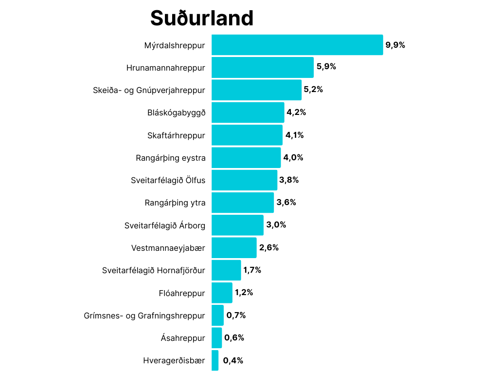Íbúafjölgun á þessu tímabili í Hveragerði er einungis um 0.4% eða um 14 manns. Á sama tíma fjölgar íbúum í Hrunamannahreppi um 53 manns, Rangárþingi Eystra um 85 manns, Ölfusi um 106 manns og í Árborg um 358 manns. Til samanburðar fjölgaði íbúum í Hveragerði árið 2022 um 207 og árið 2023 um 157.